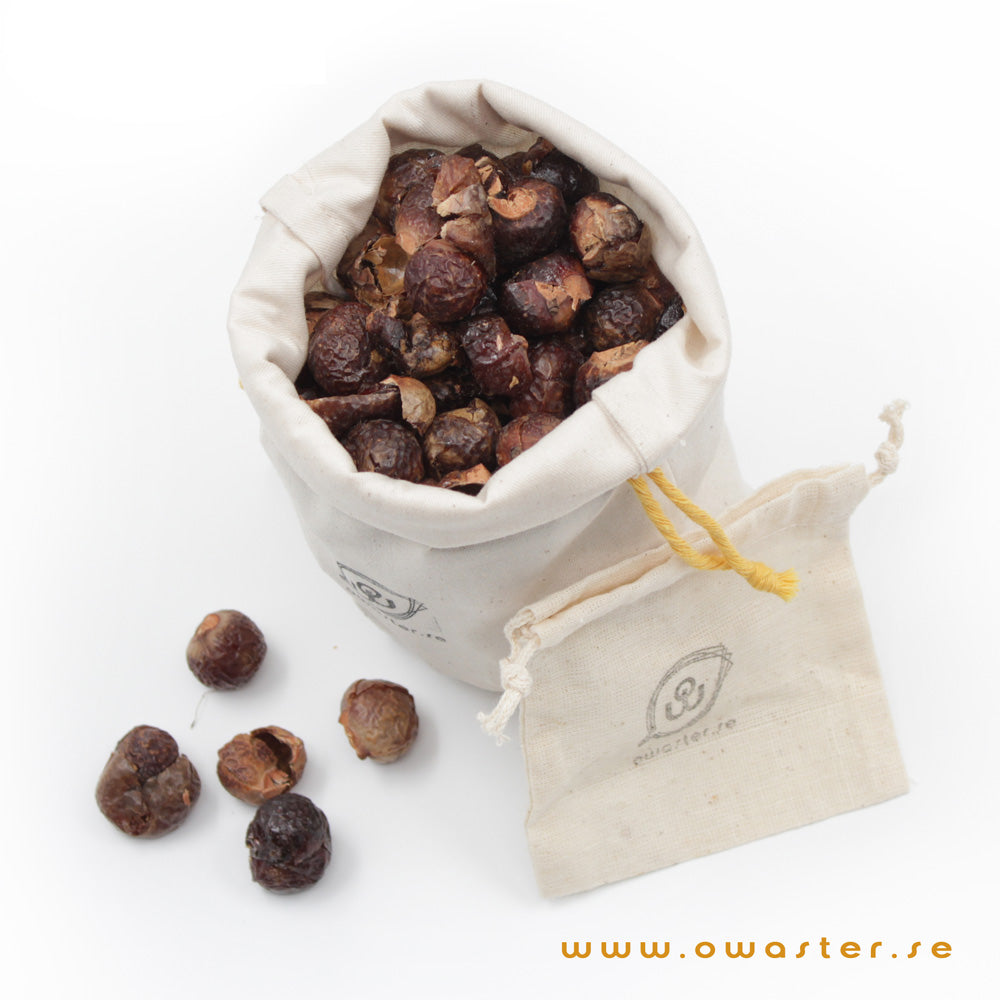 Tvättnötter är frukten av ett träd som heter Sapindus Mukorossi. Nötskalen innehåller saponin som löses upp i varmt vatten och tar bort föroreningar.