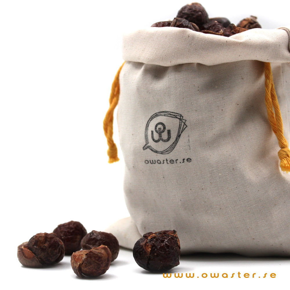 En påse tvättnötter kan användas flera gånger ända tills dem inte känns tvåliga när du gnuggar dem. När skalen inte längre är användbara kan de läggas på komposten.